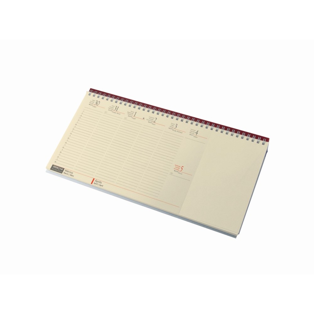 Fekvő asztali naptár - blokktömbös, chamois p., bordó