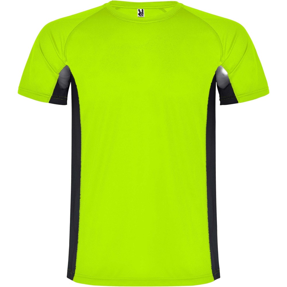 Roly Shanghai rövid ujjú férfi sportpóló, fluor green, solid black