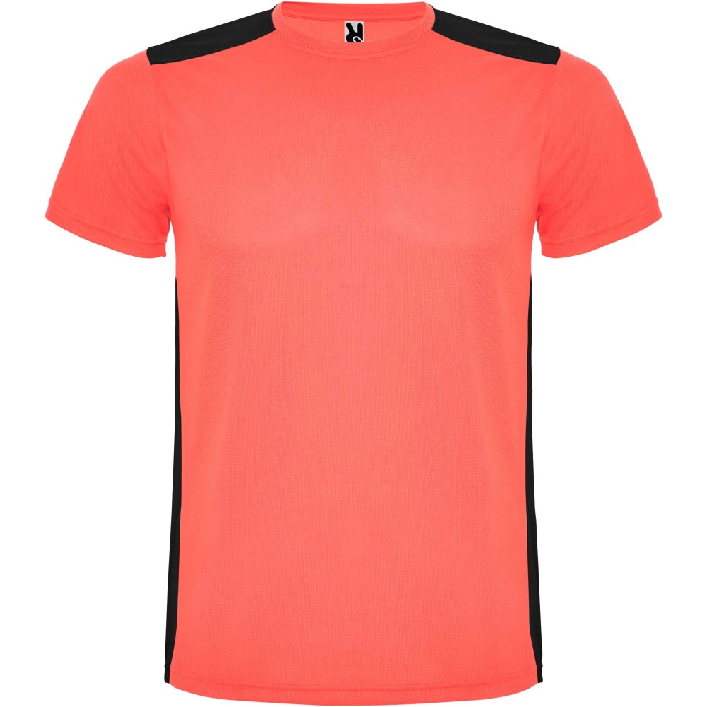 Roly Detroit rövid ujjú gyerek sportpóló, fluor coral, solid black