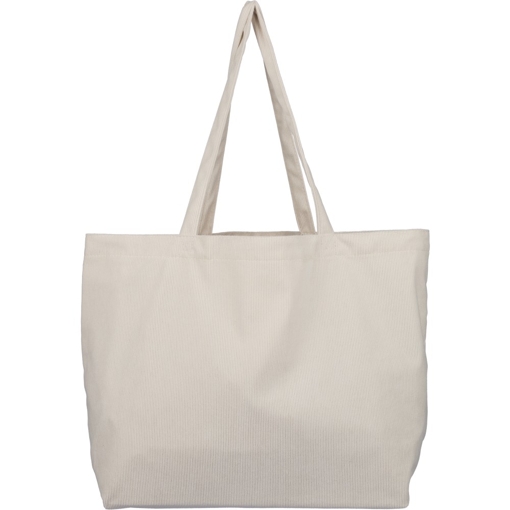 Kordbársony anyagból készült válltáska 2,5 × 60 cm hosszúságú fülekkel, 51 × 15 × 33 cm méretű tágas fő rekesszel és 10 × 10 cm méretű belső zsebbel. Mindennapi használatra alkalmas.
