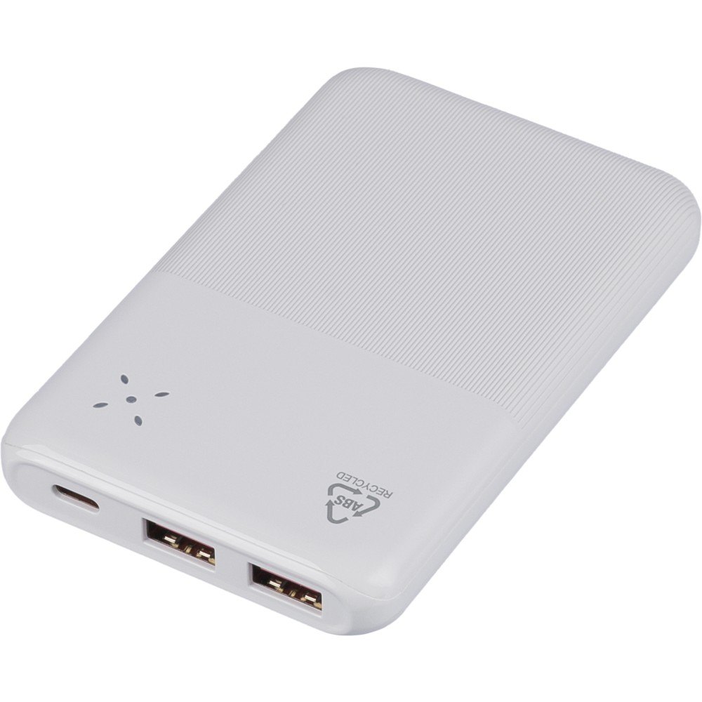 Újrahasznosított ABS anyagból készült powerbank 10 000 mAh kapacitással és 22,5 W gyors töltési teljesítménnyel. Type-C in/out és Type-A bemenettel, digitális kijelzővel, sima és texturált felülettel. Biztonsági védelmekkel ellátva. A hátoldalon gravírozott recycled (újrahasznosított) alapanyagra utaló logó található. Selyempapírral bélelt barna dobozba csomagolva.