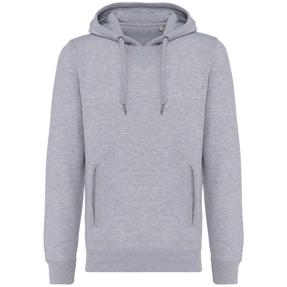 80% organikus pamut / 20% újrahasznosított poliészter. Oxford szürke 75% bio pamut / 25% újrahasznosított poliészter. Francia frottír LST (Low Shrinkage Terry). Szövet: enzimes mosás. Karcsúsított szabás. 2 elülső zseb. Bordázott kézelő, bordázott szegély és bélelt kapucni. Fém véggel ellátott húzózsinór. Félhold alakú kivitel a nyakkivágásnál, hogy megkönnyítse a díszítéshez való hozzáférést belülről. Twill szalagos nyak és V alakú betét a nyakkivágásnál. Nincs márkacímke a nyakon, csak méretcímke a dekorációhoz való könnyebb hozzáférés érdekében. OEKO-TEX N CQ1007/7 STANDARD 100 tanúsítvánnyal rendelkezik. IFTH.