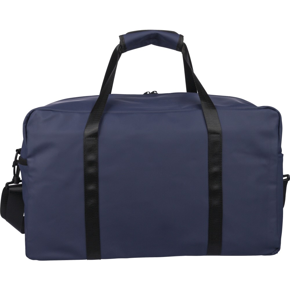 Újrahasznosított PU anyagból készült sporttáska 35 literes űrtartalommal, 210D újrahasznosított poliészter béléssel. 108 cm hosszúságú és 2,5 cm szélességű fogantyúval rendelkezik tépőzáras rögzítéssel, valamint 130 cm hosszúságú és 3,9 cm szélességű állítható vállpánttal. Elülső cipzáras zsebbel és nagy fő rekesszel készül. A belső címkén újrahasznosított alapanyagra utaló logó található.